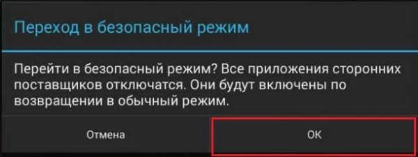 Для загрузки устройства в безопасном режиме нажмите кнопку включения/выключения, установите палец на «Отключить питание» и держите его до тех пор, пока не появится сообщение «Переход в безопасный режим». После этого нажмите ОК.