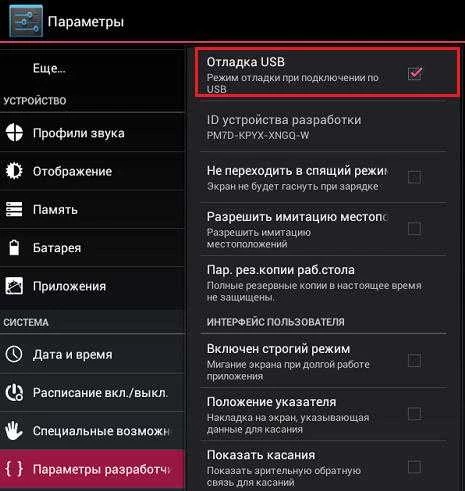 Для полноценного доступа ко всему содержимому андроид-гаджета необходимо заранее получить root-права и включить отладку по USB. Последняя активируется через сервисное приложение «Параметры» — «Система» — «Параметры разработчика».
