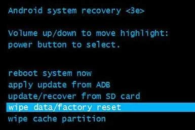 В меню Recovery выбираем опцию «wipe data/factory reset» либо просто «factory reset».